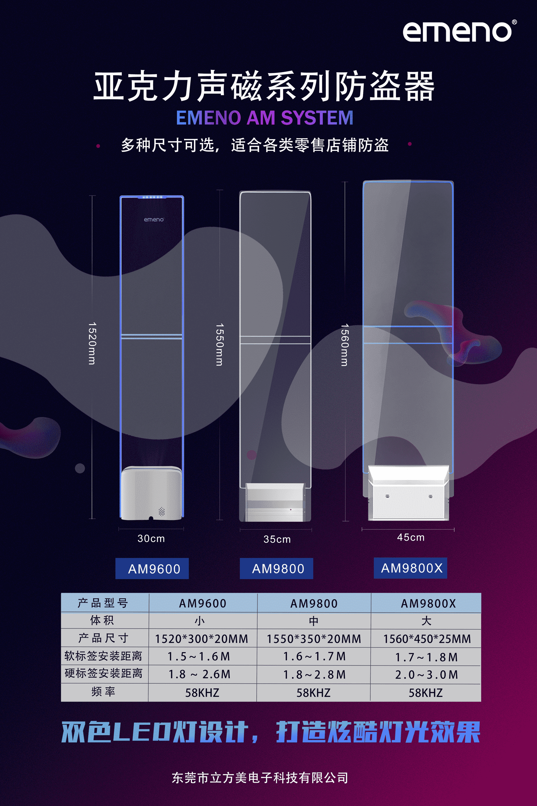 立方美emeno明星款超市防盜器有以下型號:AM9600,AM9800和AM9800X這三款亞克力超市防盜器。